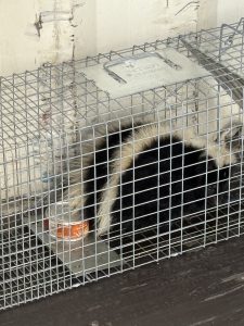 HONOLULU – A live skunk was captured at Hilo Harbor last Friday, Nov. 07, after two separate people from a shipping company reported seeing a skunk around Pier 1 early Thursday morning. Agriculture inspectors from the Hawai‘i Department of Agriculture and Biosecurity’s Plant Quarantine Branch (PQB) in Hilo were dispatched to the pier at about 8:15 that morning.
