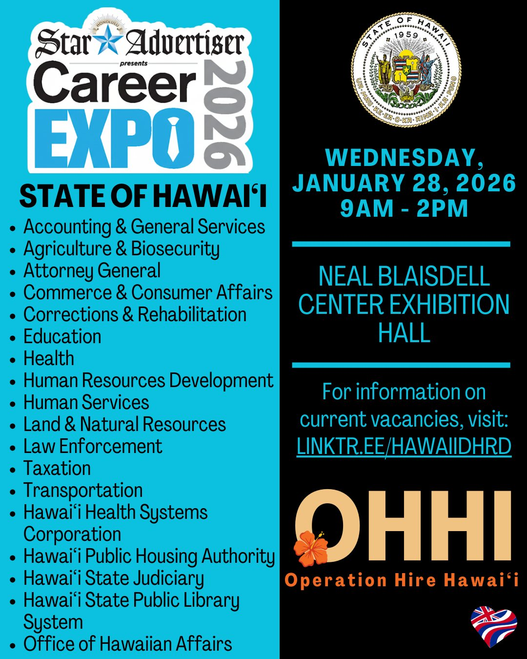 Jan. 28, 2026 – Star- Advertiser/State of Hawaiʻi Career Expo 2026, Neal Blaisdell Center Exhibition Hall, 9:00 a.m. – 2:00 p.m.